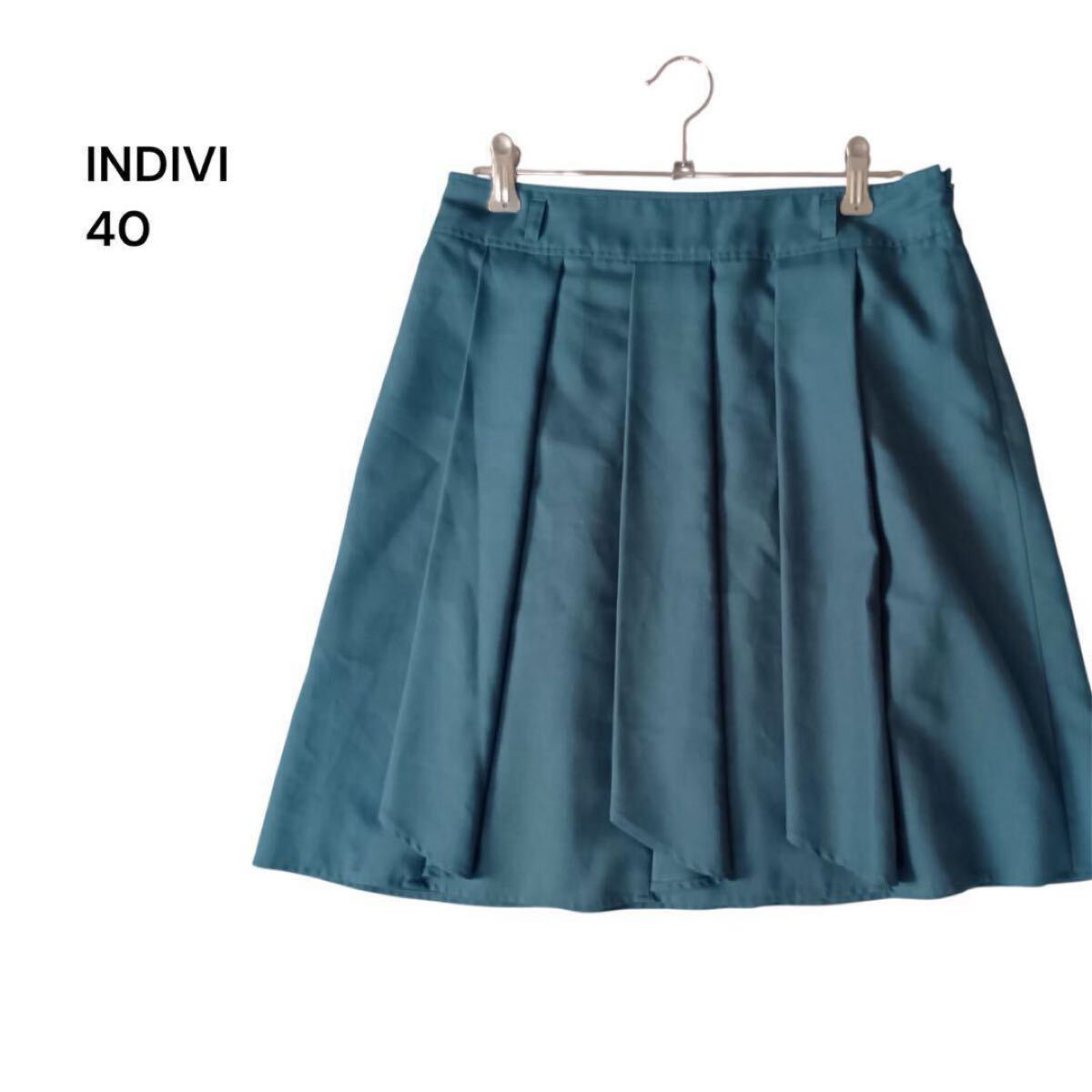 - INDIVI プリーツスカート ブルーグリーン 40サイズ