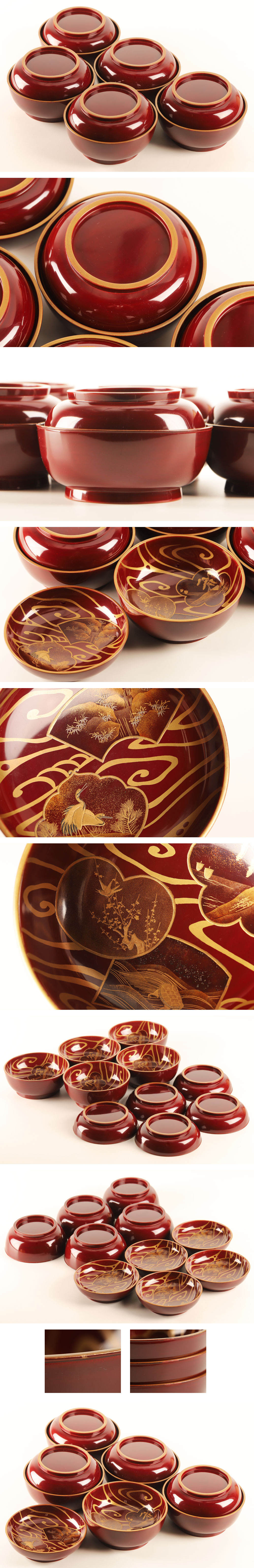 画像参照 椀一客に小アタリ、椀三客に塗り直しあります*経年の傷み、擦れ、汚れ等はご承知下い。*