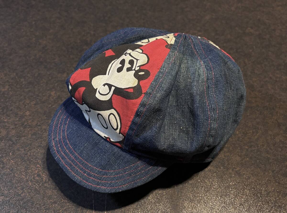 > デッドストック70s60sビンテージMICKY MOUSEデニム切替キャスケット帽M58インディゴ縦落ち70年代1970sハンドメイド60年代1960sファブリック