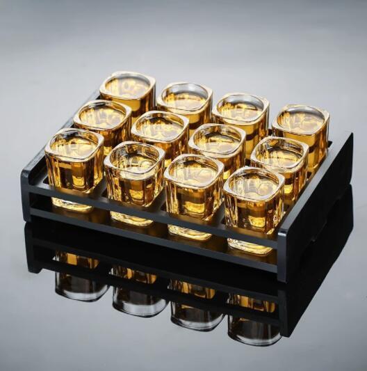 - 新入荷【12個セット】スクエアショットグラス+ブラックラックセット ウイスキー/洋酒/白酒用 バー/KTV向け