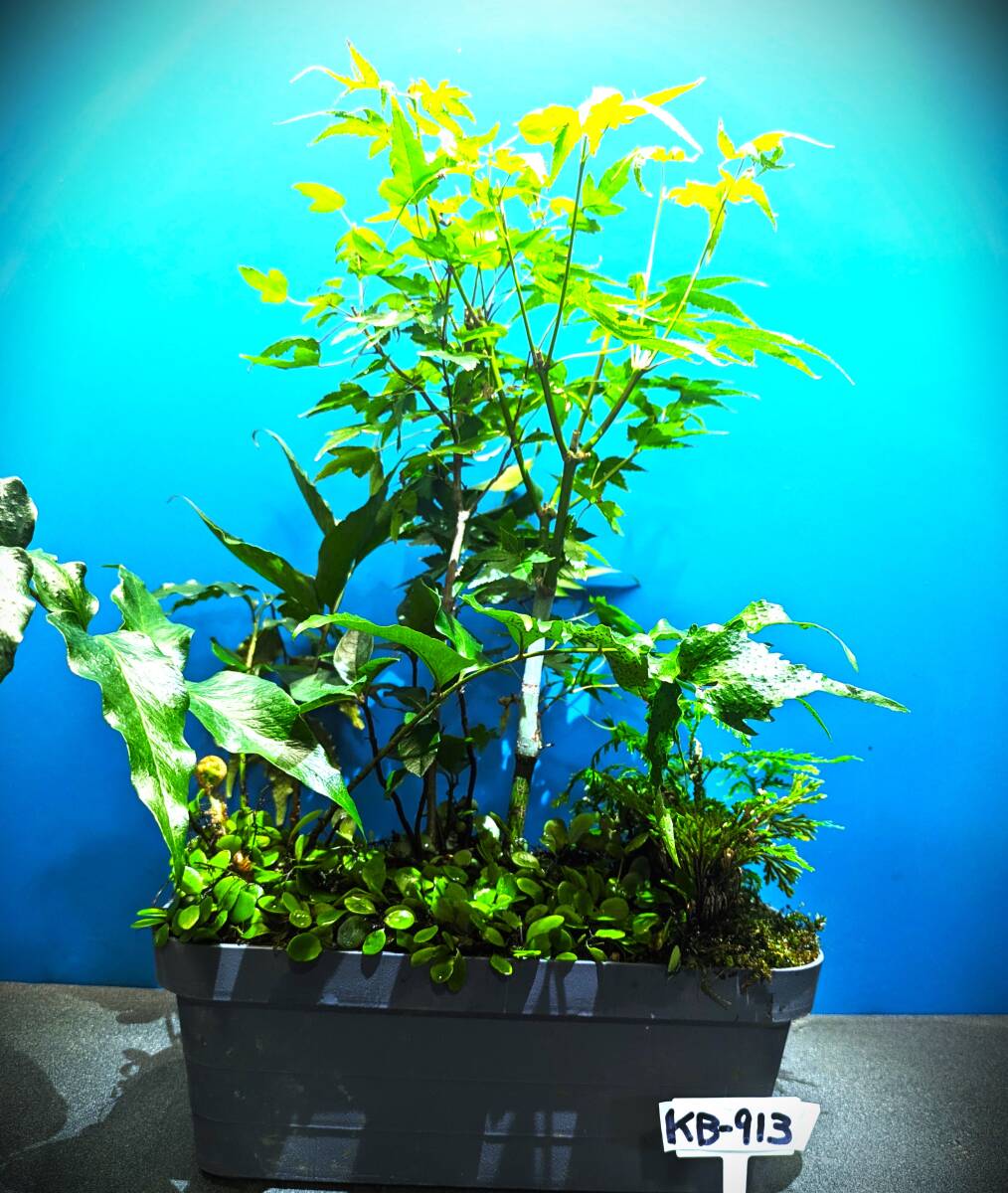 - ▲▽夢道園の/プラ鉢に岩松、カエデ寄せ植え苔盆栽■山野草■イワヒバ■コケ・苔■KB-913△▼