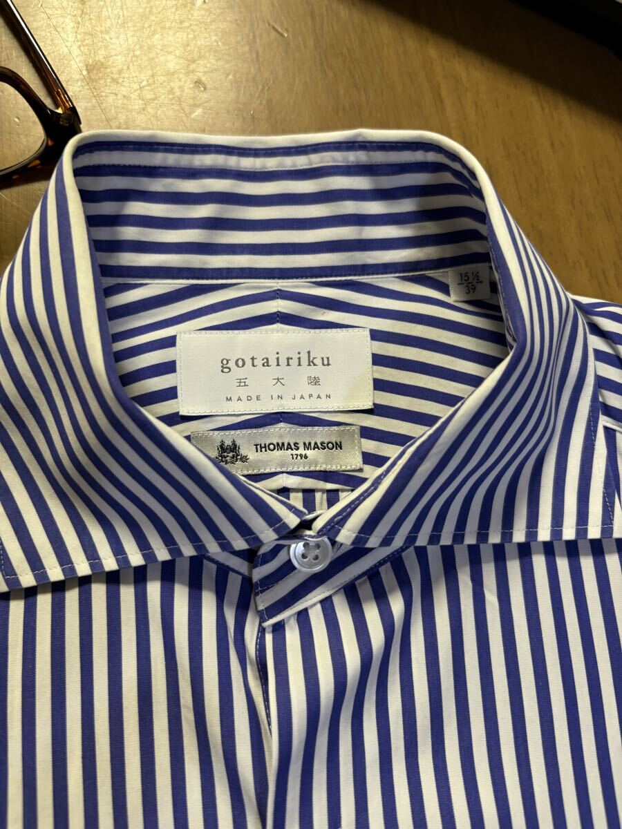 > gotairiku 五大陸 ㈱オンワード樫山日本製 綿100%ブロードクロス 青白ロンドンストライプ/ホリゾンタルカラー