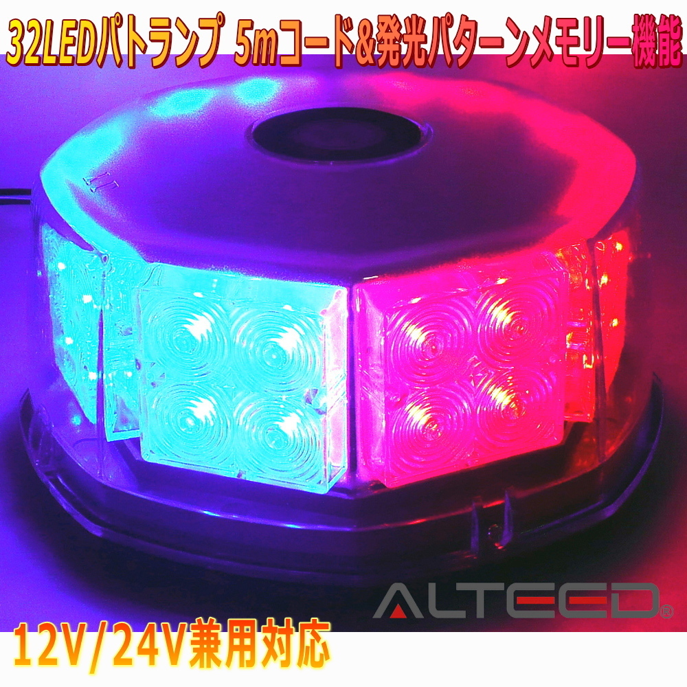 - ALTEED/アルティード 自動車用LED回転灯 赤色青色発光 八角型32LED パトランプライト 12V24V兼用