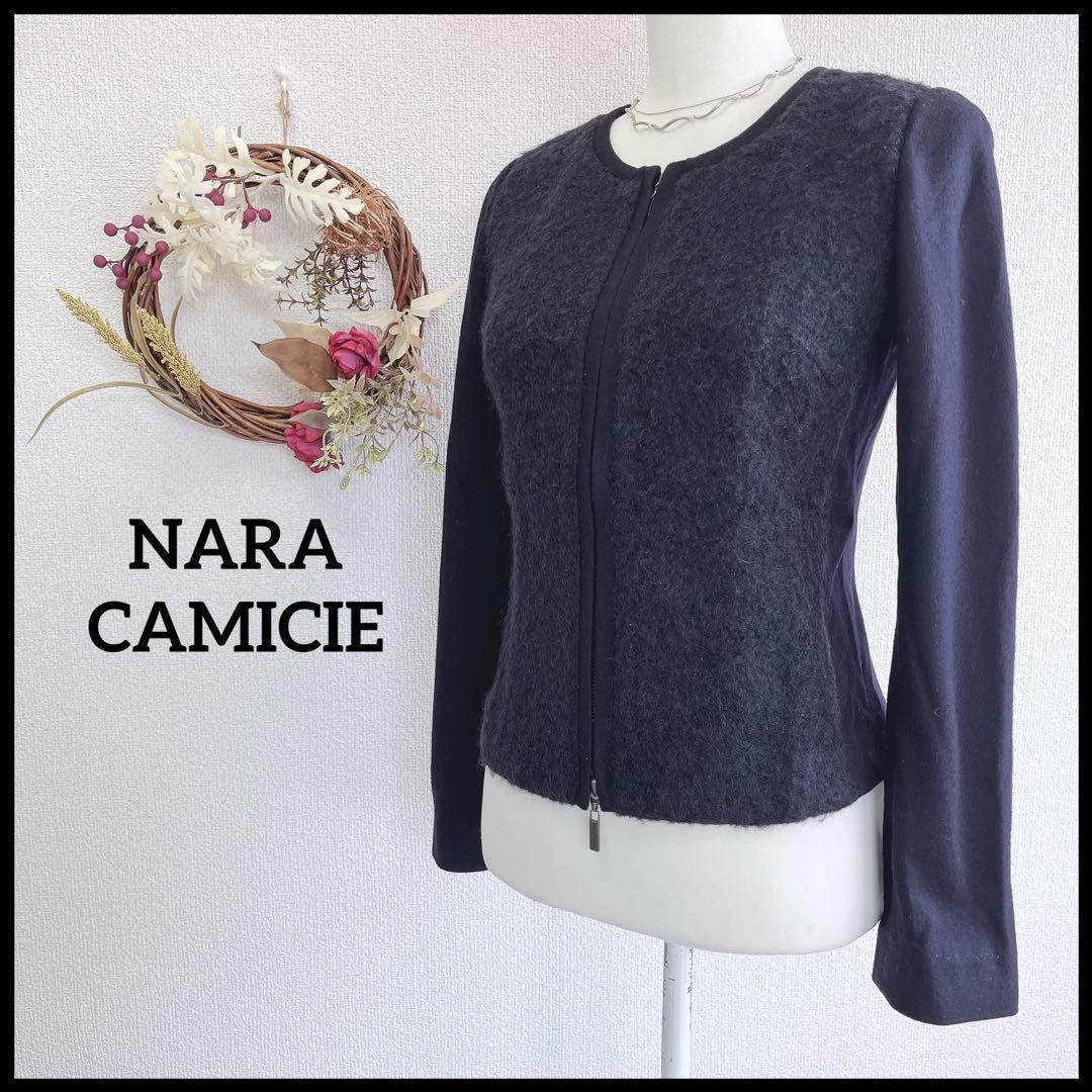 - ☆Wジップ☆ NARACAMICIE ナラカミーチェ ノーカラージャケット ウール 上品 ネイビー 紺 S
