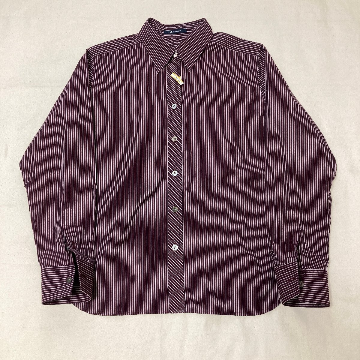 > Aquascutum アクアスキュータム 日本製 ストライプ ロングスリーブ シャツ ボルドー系 1021350-29 4F