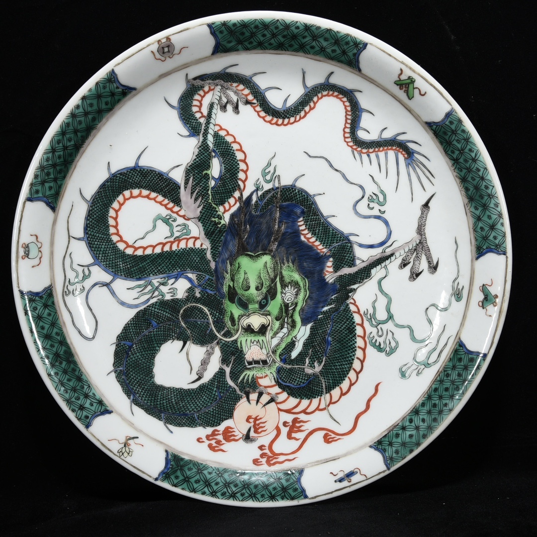 > ◆珍蔵◆中国古美術 大清康熙年製款 五彩 古陶磁 龍紋大盤 精品 細密細工造 置物 擺件 骨董品 古賞物 時代物 T08