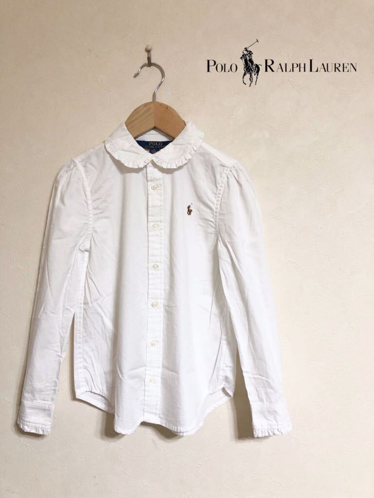 - 【良品】 Polo Ralph Lauren ポロ ラルフローレン フリル コットン シャツ ブラウス トップス キッズ サイズ6 長袖 ホワイト 120/60 女の子