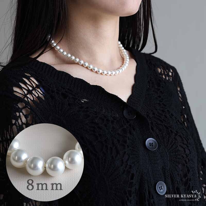 - (40cm) パールネックレス 真珠ネックレス シルバー925 真珠 ホワイト 幅8mm 金属アレルギー対応