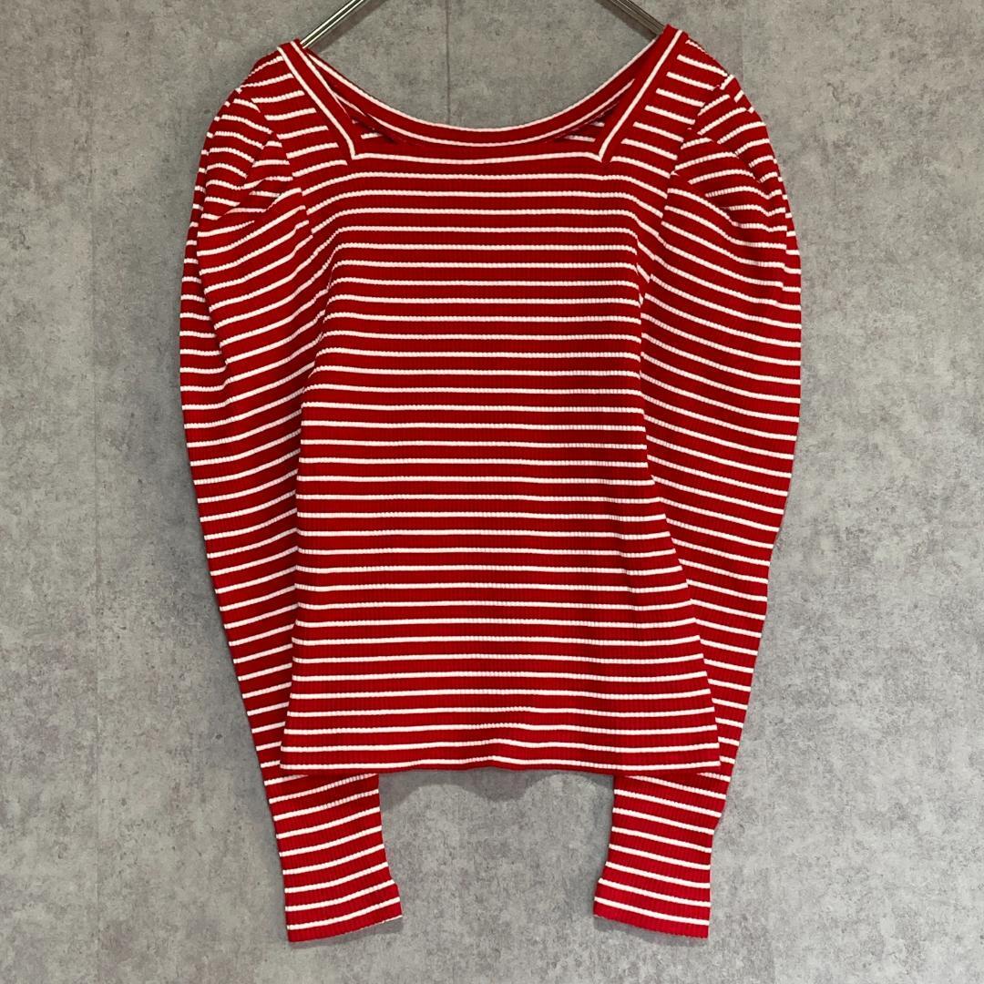 - ジーユー(S)リブボリュームスリーブT*長袖*ボーダー*前後2WAY*カットソー