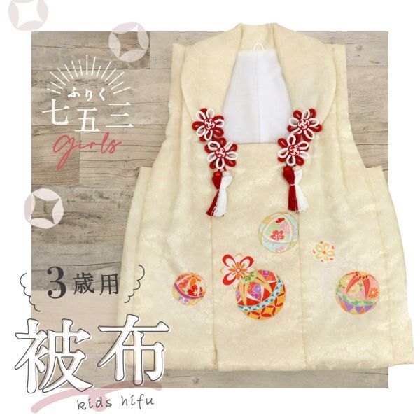 - 【七五三 子供用 被布 女の子】パステルイエロー 手毬『新品 』2歳 3歳 着物 コート 飾り紐付き 黄色 羽織り 女児 正絹 日本製 k25-82