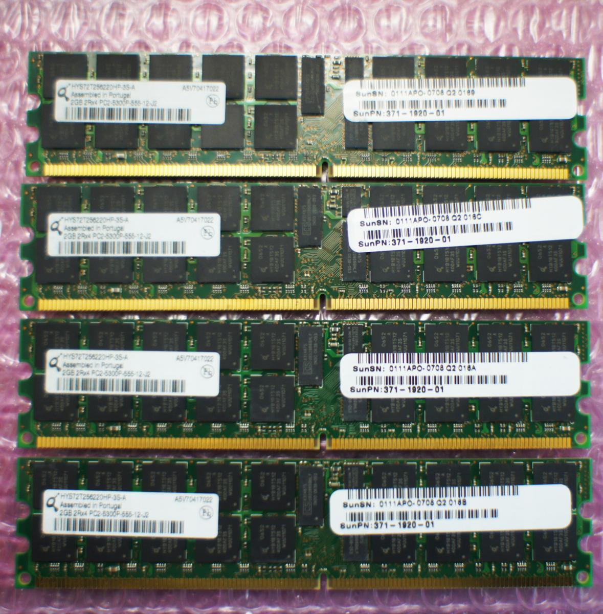 > ●SUN(Oracle)純正 計8GB サーバー用Registeredメモリ PC2-5300P 2GB×4枚セット (P/N:371-1920-01)
