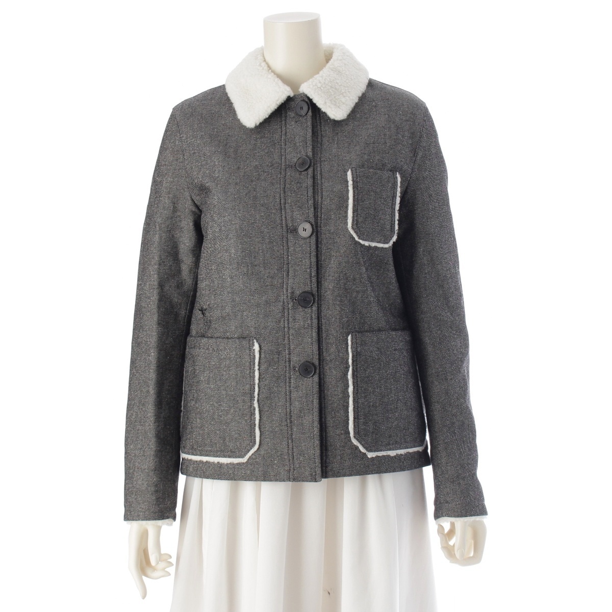 > クリスチャンディオール 21-22FW コットン bee 刺繍 ボア ジャケット 157V54A3439 ブラック ホワイト 38【中古】