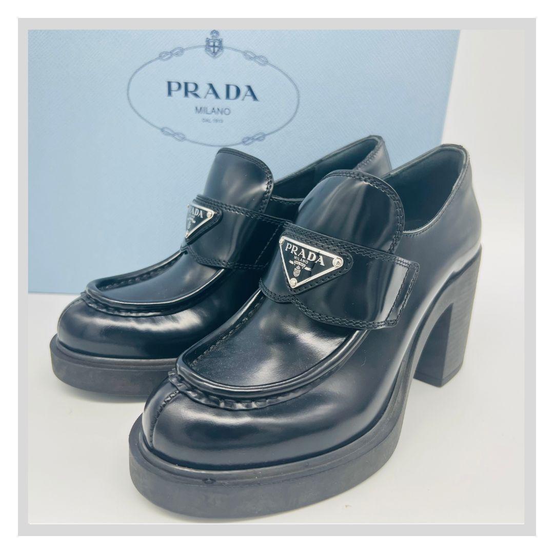 - プラダ 23cm トライアングル ローファー ブラック チョコレート ヒール