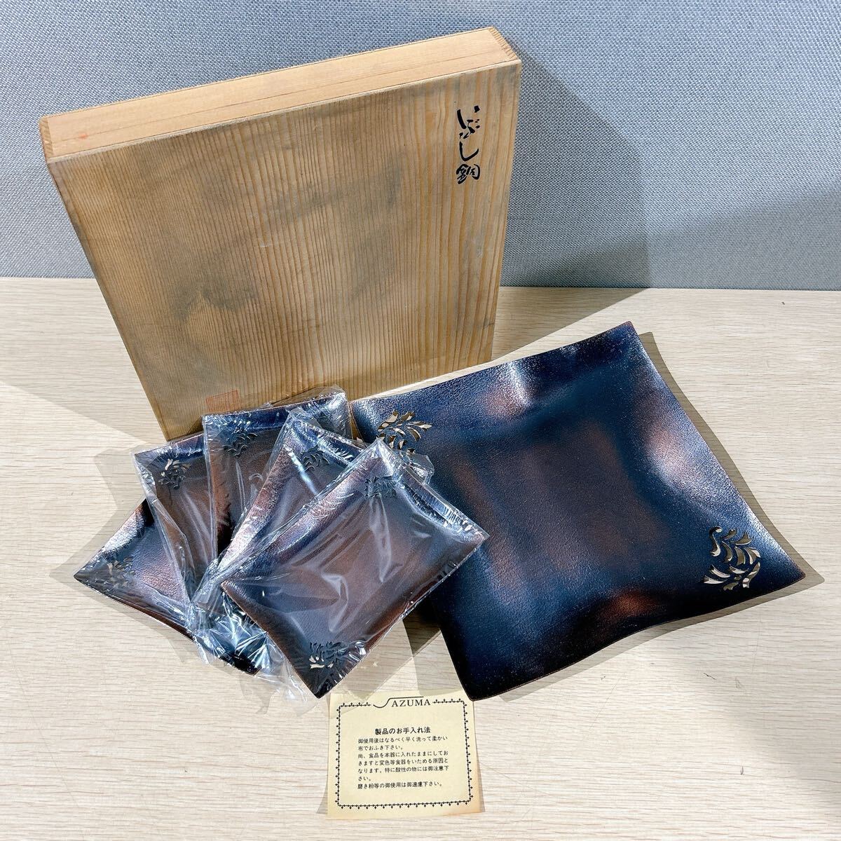 - ★【未使用/保管品】いぶし銅 AZUMA 銘々皿 6枚組 共箱
