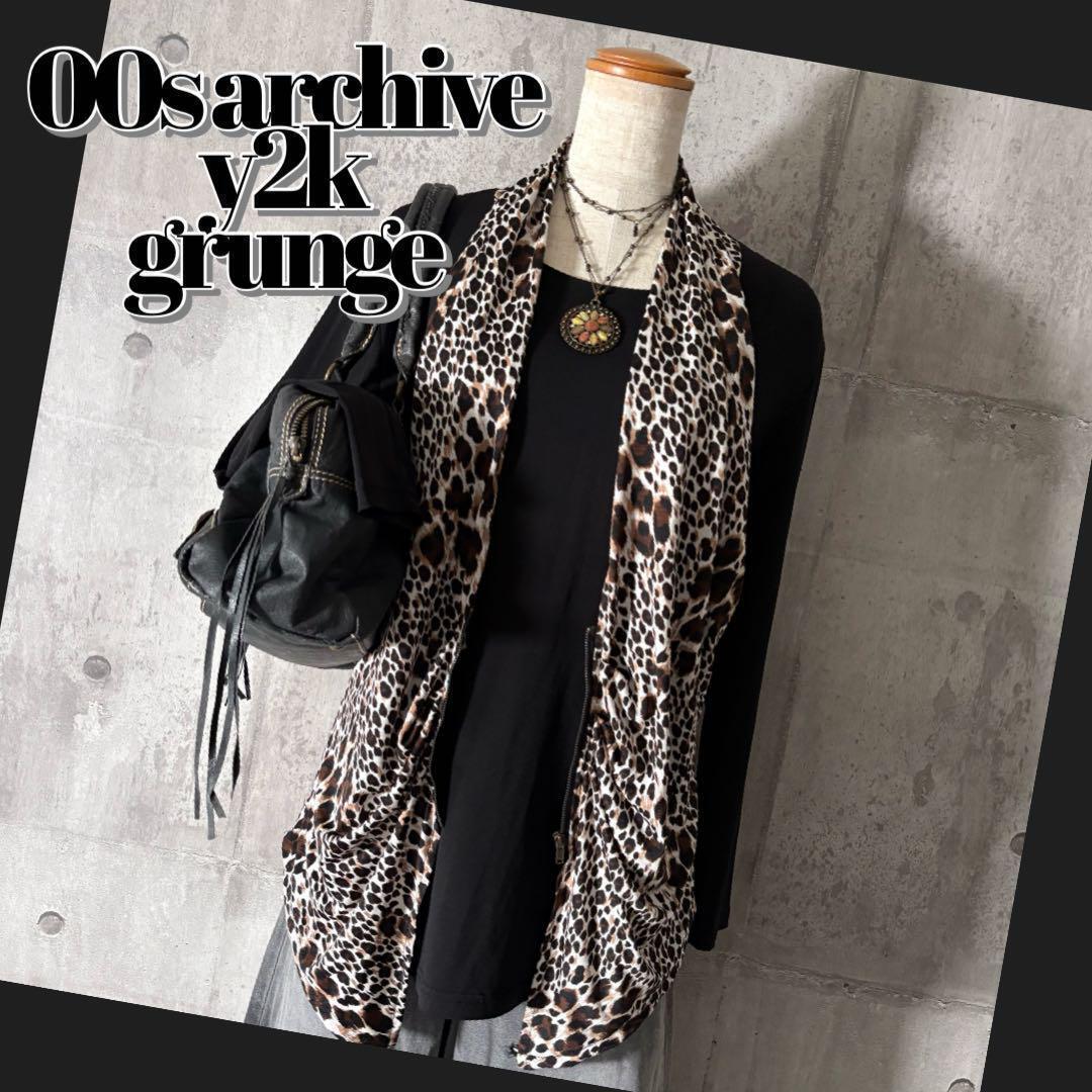 - y2kフェイクレイヤードロンT 豹柄 パンク 平成ギャル 00s archive