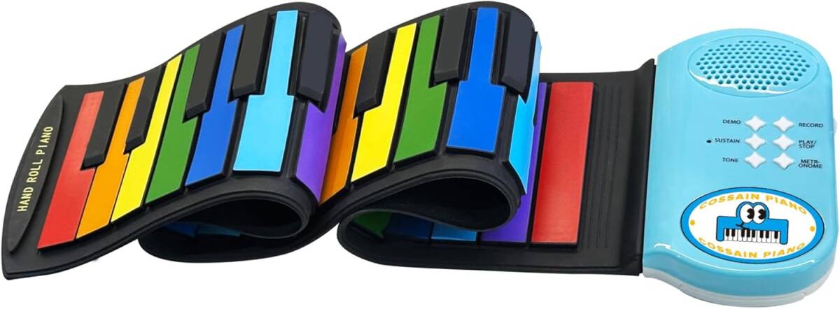 - ロールピアノ レインボー 小型 軽量 持ち運び可能 子供向け 丸められる 手入れ 電子ピアノ 49鍵 ロール式 卓上 入門