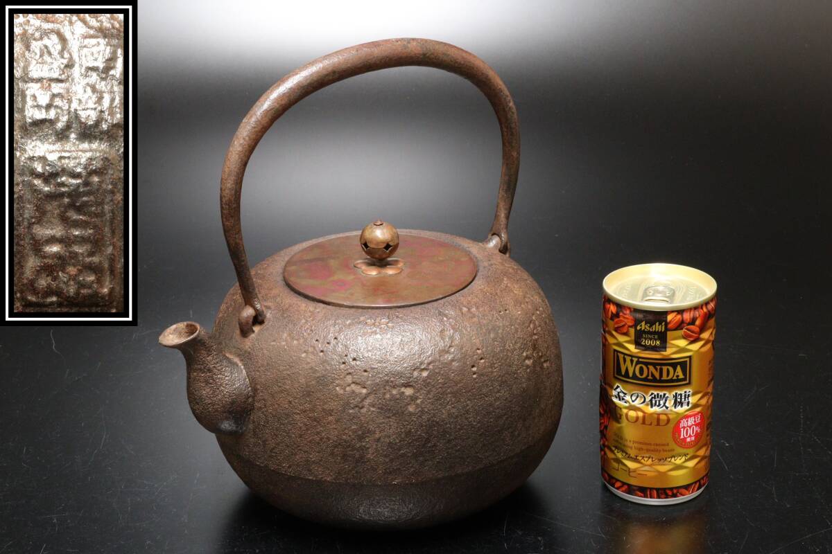 - P 煎茶道具 南部盛岡 茂忠 斑紫銅蓋 鉄瓶 重量1574g