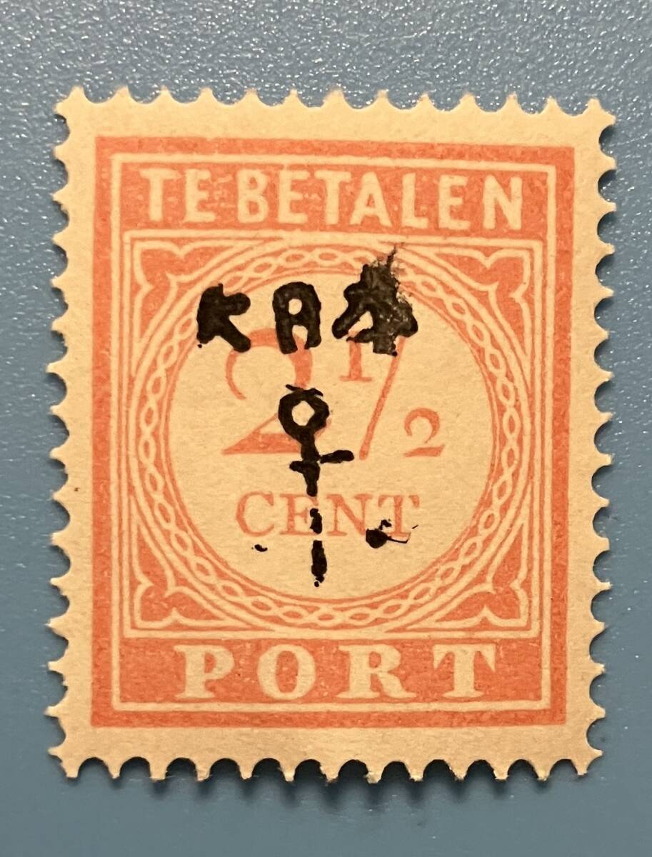 - 南方占領地切手 オランダ領インド 不足料切手 2 1/2C 大日本 イカリ 加刷 丸まり 裏のりきれい 未使用
