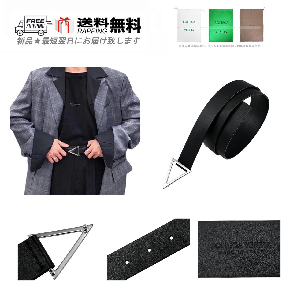 > L677-90.. BOTTEGA VENETA ボッテガ ヴェネタ ベルト BELT トライアングル バックル GRAINY カーフ ロゴ イタリア製 ★ 8803 ブラック