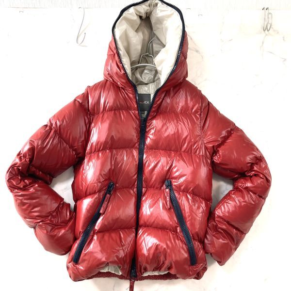 > 極美品 希少色 デュベティカ ダウンジャケット アウター コート フード 肉厚 ダウン90% 羽毛 メンズM 赤 レッド B1351
