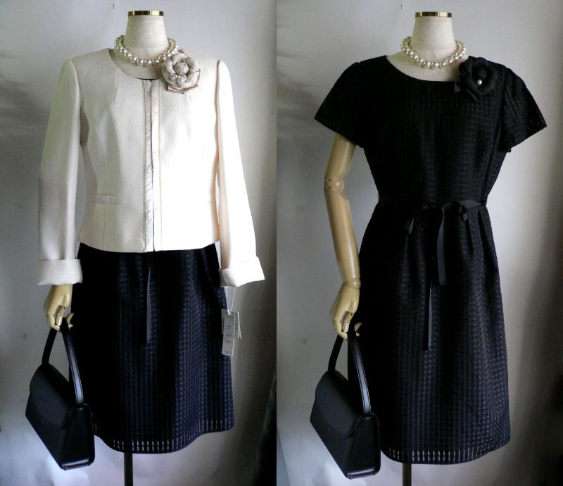 - 新品13号ベージュノーカラーツイード黒ワンピーススーツ卒業式入学式フォーマルセレモニー