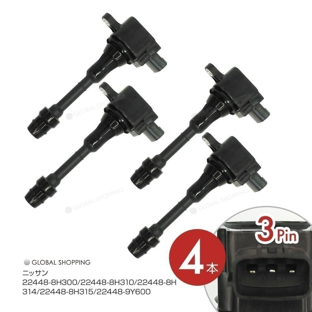 > イグニッションコイル エクストレイル T30 NT30 セレナ TC24 YNC24 RC24 バサラ JTU30 JTNU30 プリメーラ WTP12 WTNP12 22448-8H300 4本