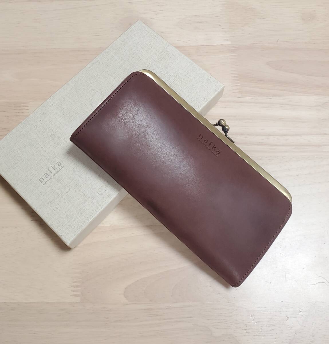 - 新品 未使用 美品 nafka がま口長財布 レディース 女性用 ロングウォレット 財布 ガマ口 本革 牛革 日本製 ブラウン 茶色
