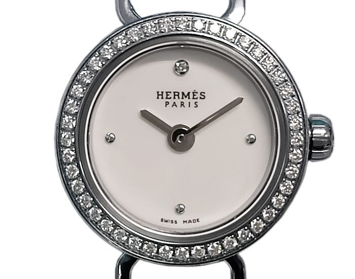 - HERMES エルメス 腕時計 フォーブル 039744WW00 FG1.191 750 K18 WG 28.7g 1PD 白文字盤 ダイヤベゼル レディース QZ 稼働品 箱 ケース付