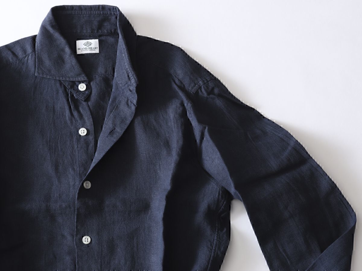 - ★中古★BEAMS HEART ビームスハート★長袖麻ワイシャツ★S【42-11-0077-819】ネイビー紺【本物保証】正規品★丈夫で長持ち★通気性抜群