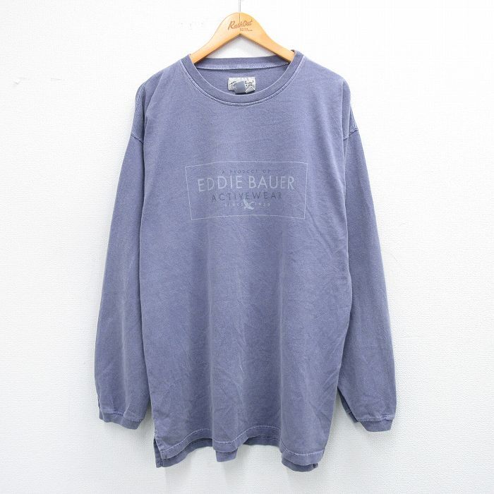 > XL/古着 エディーバウアー 長袖 ビンテージ Tシャツ メンズ 00s ビッグロゴ 大きいサイズ ロング丈 コットン クルーネック 薄紫 パープル s