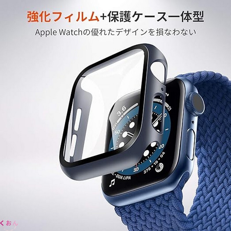 - ブルー 44mm 枠 PC + 強化ガラス 一体型 全面保護 アップル ウォッチ Apple Watch SE3 耐衝撃 全面保護 ケース カバー