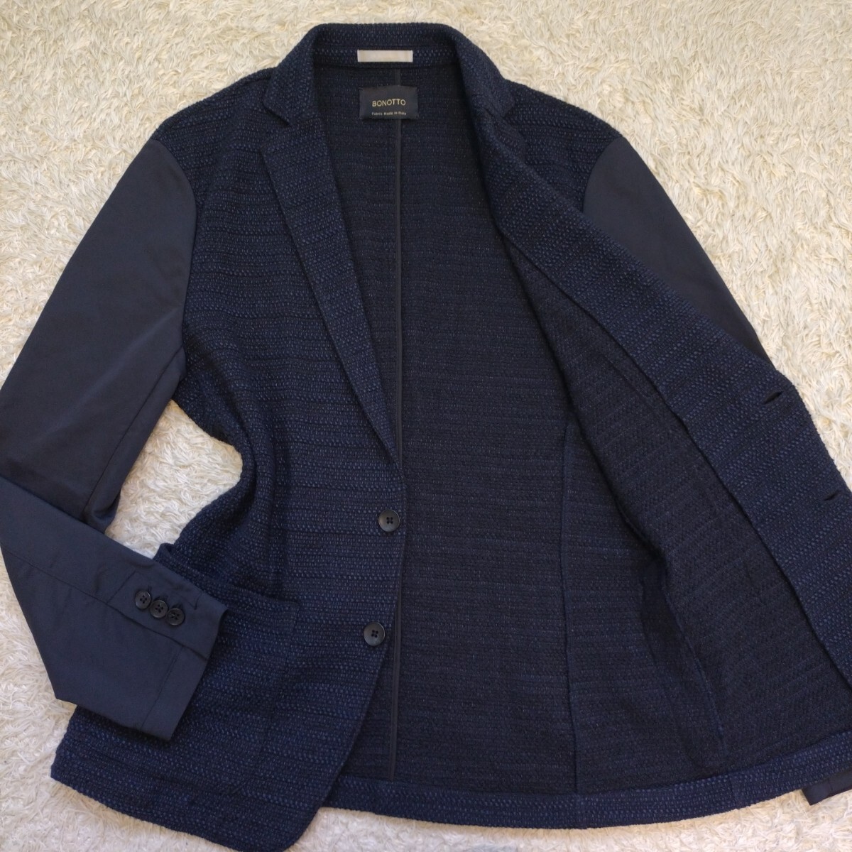 > 超希少XL!ハイストリート【お洒落の極み】HIGH STREET テーラードジャケット ネイビー ブラック BONOTTO ストレッチ 2B 本切羽 LL 上品