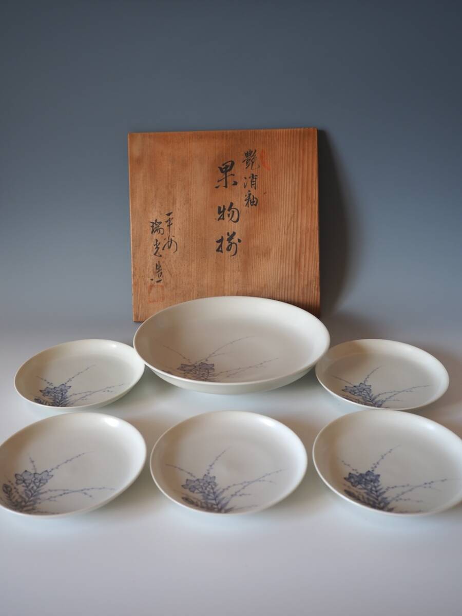 [aa705] 平安瑞光 艶消釉 皿 桔梗図拍卖