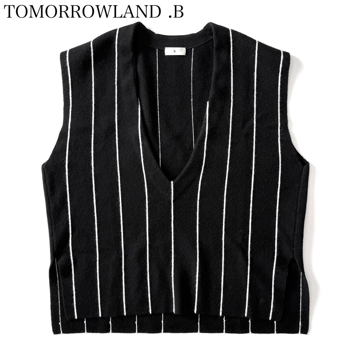 - 【23AW】TOMORROWLAND .B トゥモローランドビー スムースカシミヤ ピンストライプベスト Vネック ジレ レイヤード 近年 現行 配色 ブラック