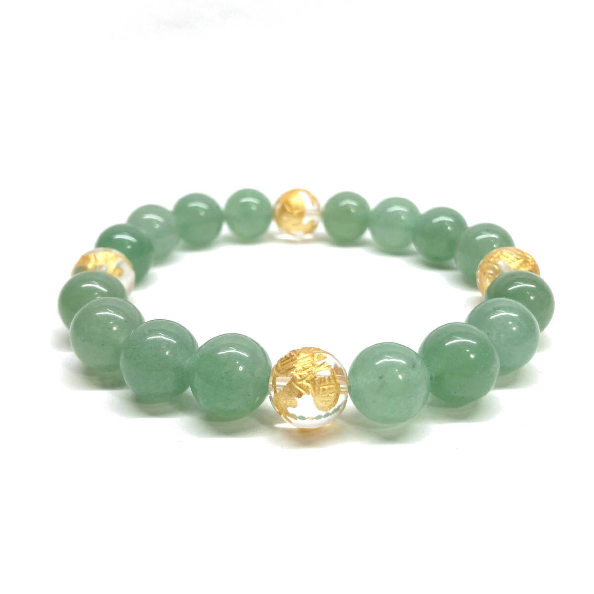 - 10mm 四神獣金彫水晶×アベンチュリン パワーストーン ブレスレット天然石 運気上昇 開運 金運 恋愛運 青龍 白虎 玄武 朱雀 ☆