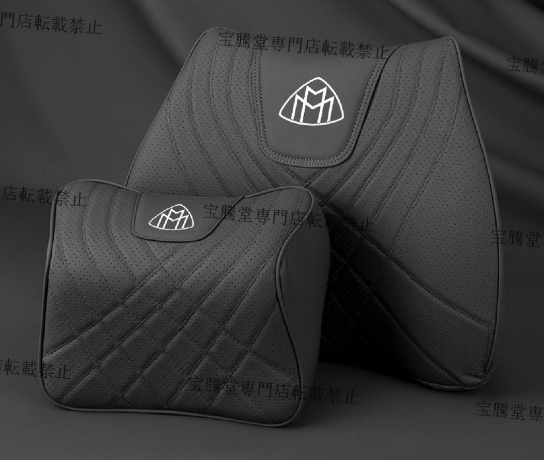 - マイバッハ Maybach ネックパッド 腰クッション 車用 背もたれクッション ネックピロー ヘッドレスト ナッパレザー低反発 背当て●レッド