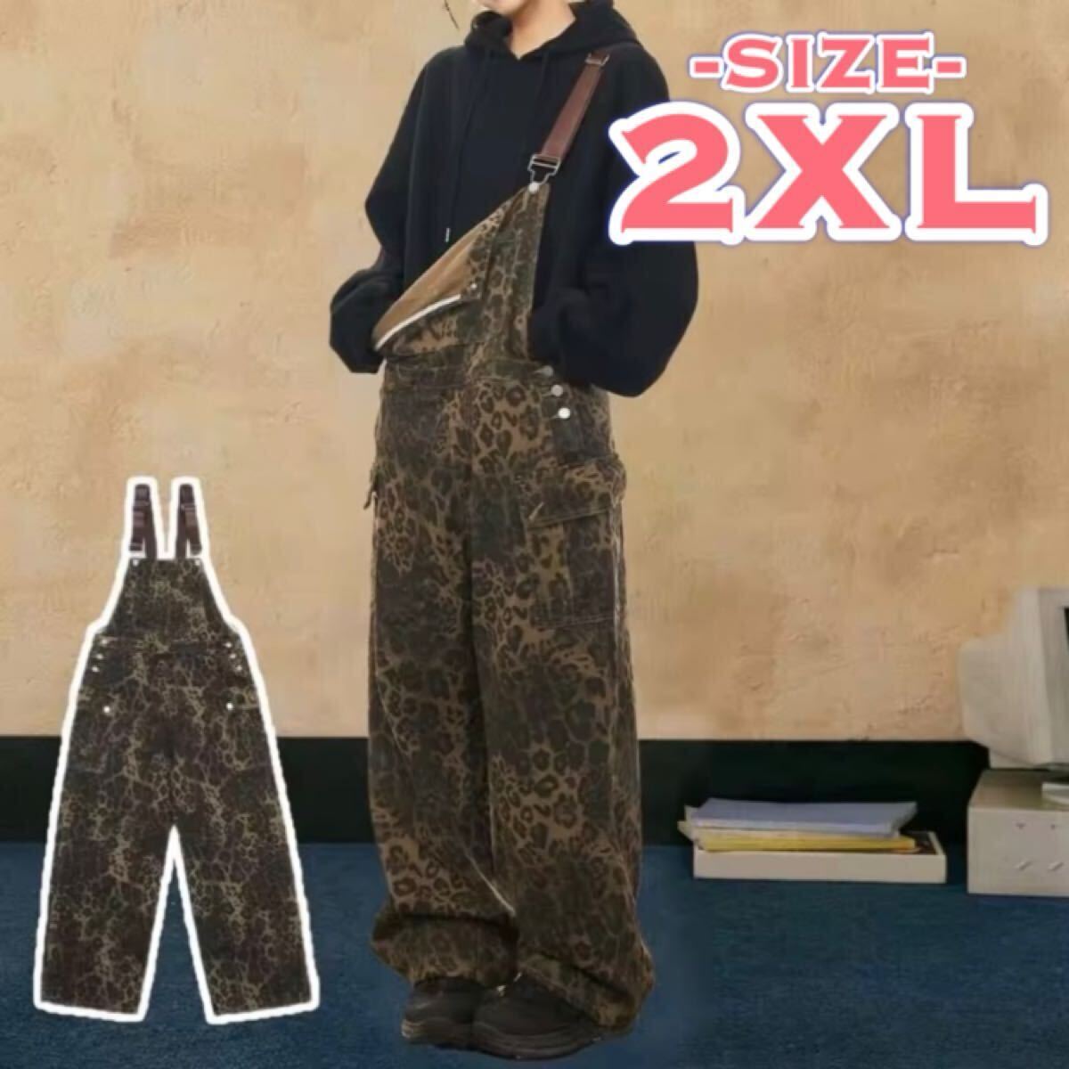 - オーバーオール サロペットパンツ デニム レオパード ヒョウ柄 秋冬ファッション オルチャン Y2K 体型カバー ストリート