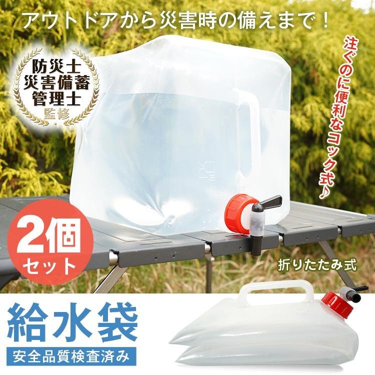 - ウォーターバッグ 給水袋 2個セット 大容量 10L ウォータータンク コック式 折りたたみ水タンク アウトドア 避難 災害 防災 断水対策 1009