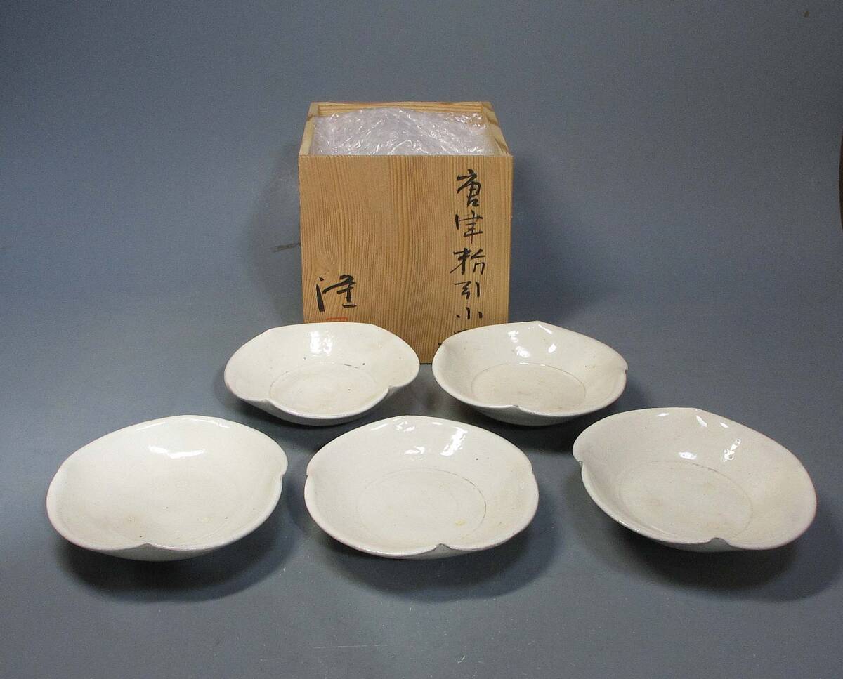 - 515953 中里隆 作 唐津焼 粉引 小皿(5客)共箱(茶道具)銘々皿・陶芸家