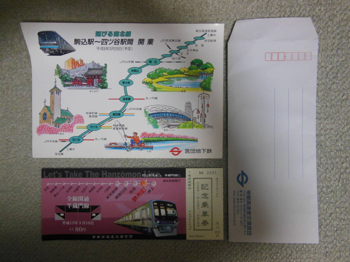 - 営団地下鉄 南北線四ツ谷開業 1996年 半蔵門線押上開業 記念乗車券 2003年