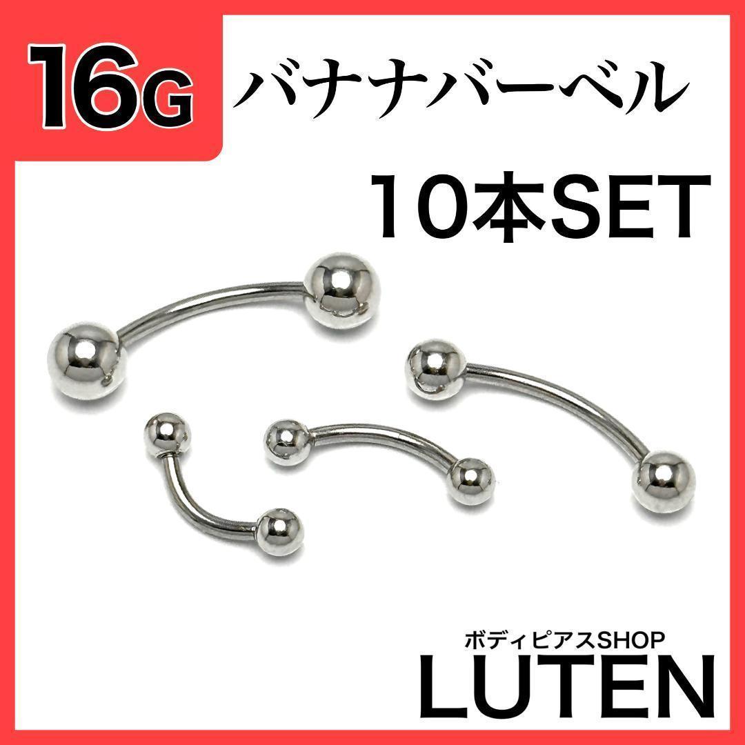 - 16G バナナバーベル 10本 軟骨 ダイス ロック サーフェイス ボディピアス