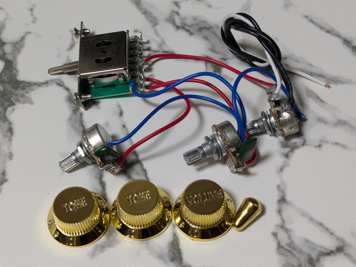 > 金色ノブ付き 配線済み、5wayセレクター、1vol、2toneポッド 未使用品