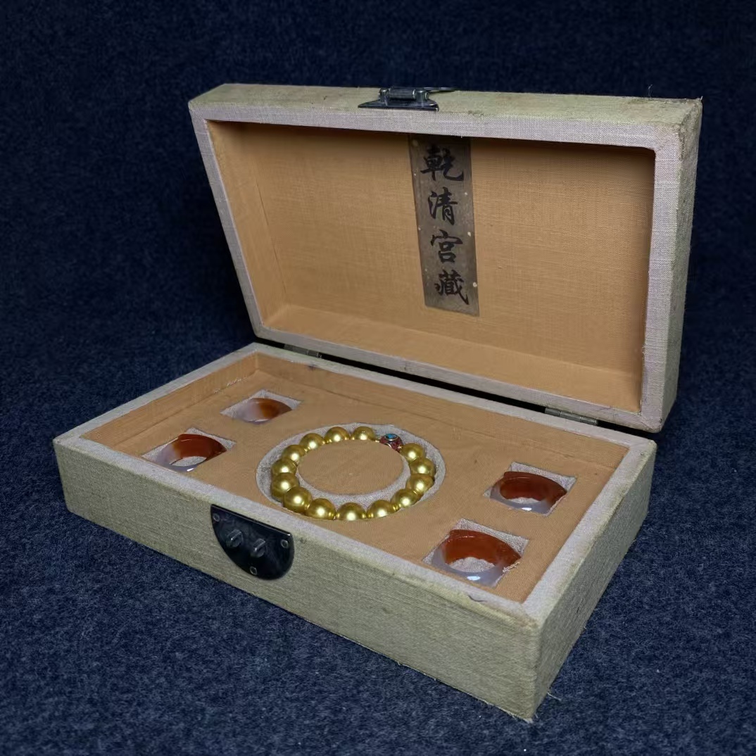 > 清時代 宮廷御蔵 寶盒珍藏 珍珠手串 紅玉戒指 手彫り 古玉 箱有 極細工 古置物 天然石 古美術 古賞物古董品 時代物 旧家蔵出 中国唐物927