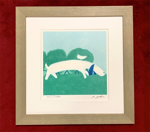 - 葉祥明●真作●ダイヤモンド スクリーニング 32/S800 直筆サインあり■タイトル『ジェイクとしろいとりさん』■メルヘンアート 可愛い犬