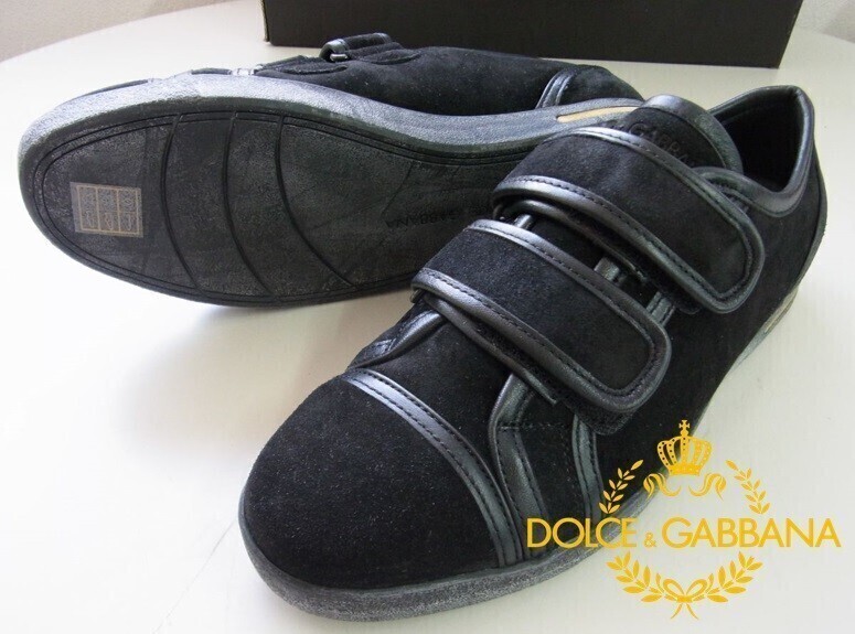 > コレクションモデル10AW★DOLCE&GABBANA ドルチェ&ガッバーナ★本革スエード ベルクロスニーカー39 UK5 24cm ブラック黒【本物保証】