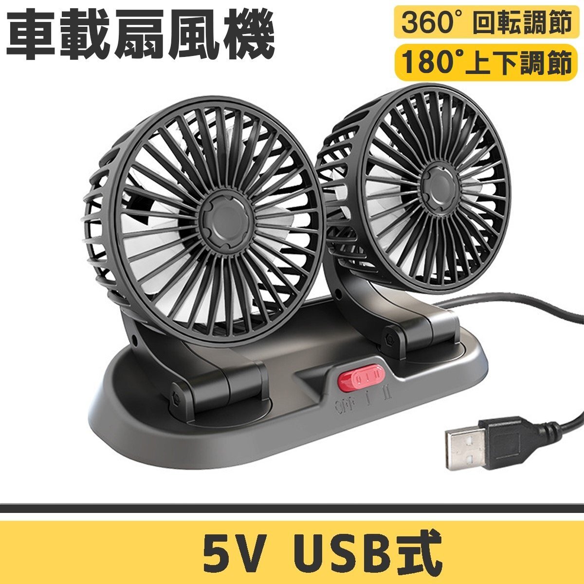 - 【送料無料】360°角度回転 +180°上下調節 車用扇風機 USB電源 5V 汎用 双頭車載ファン ツインファン 車載ファン 2段風速風量調節