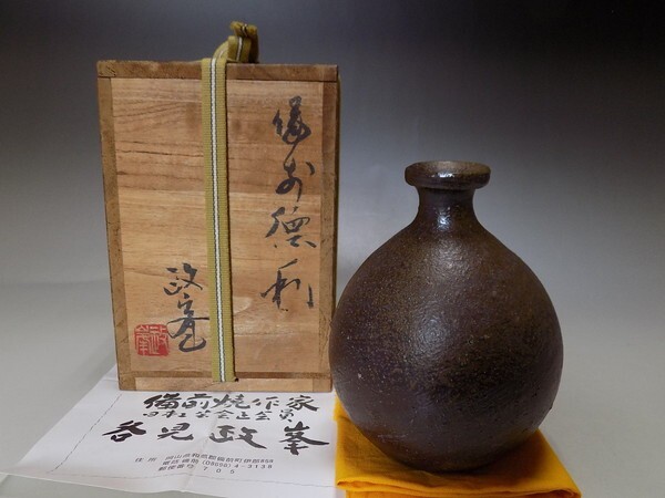 - ★ks93★備前焼 各見政峯 黒備前徳利★岡山県重要無形文化財