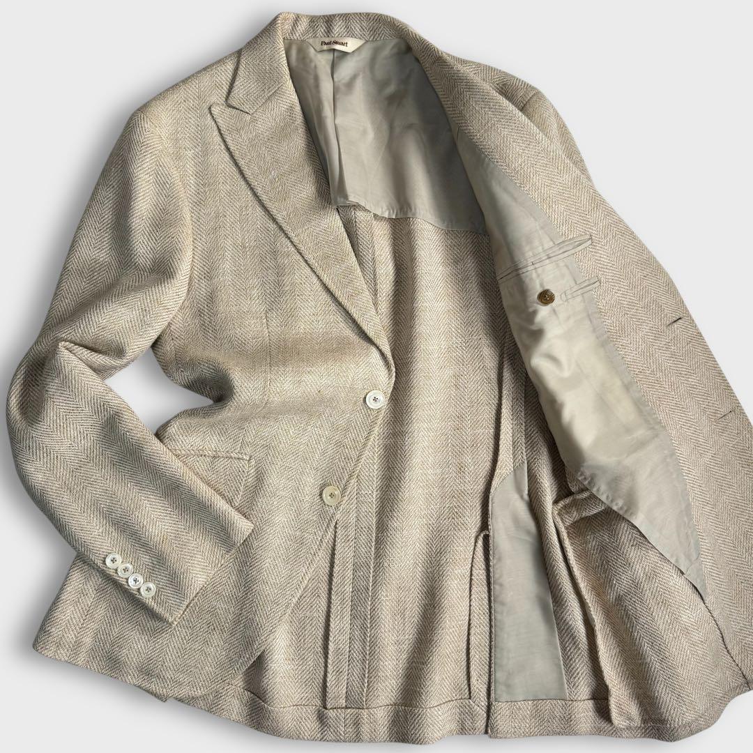 > 極美品 L PAUL STUART ポールスチュアート テーラードジャケット ヘリンボーン ベージュ 三陽商会 メンズ ビジネス カジュアル リネン 通年