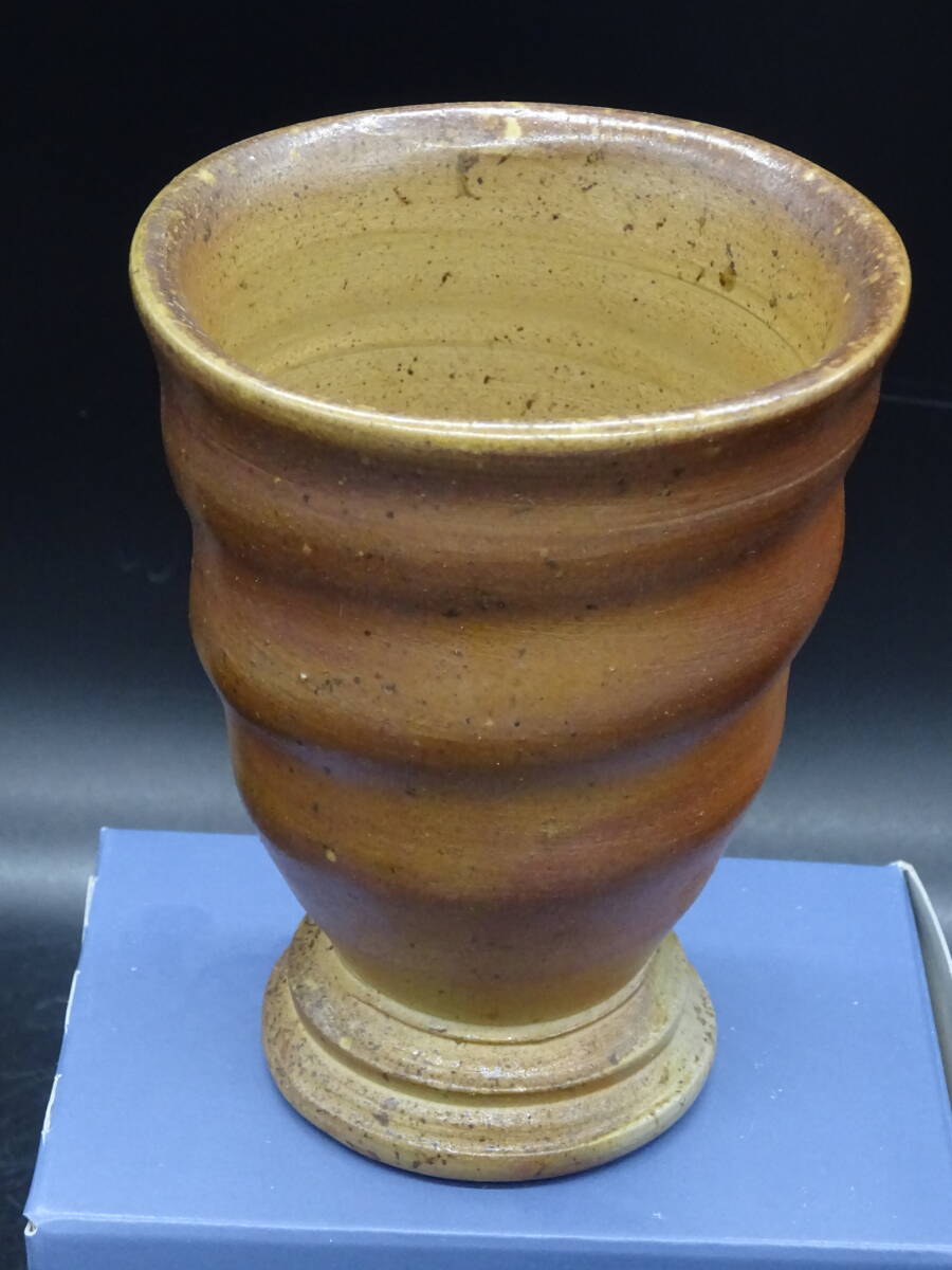 - 備前焼 作家作品 陶印有り ★備前ロクロ目ビール杯 紙箱付 酒器 茶碗 壺 茶道具