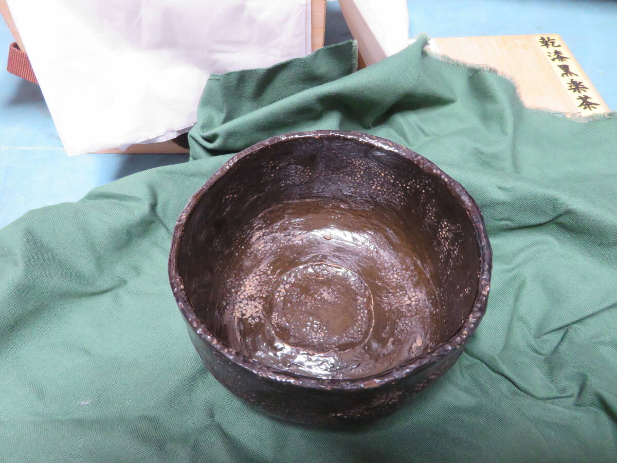 - 廃業骨董店蔵出し品 骨董品 江戸後期 乾漆 黒楽茶碗 木製 12cm
